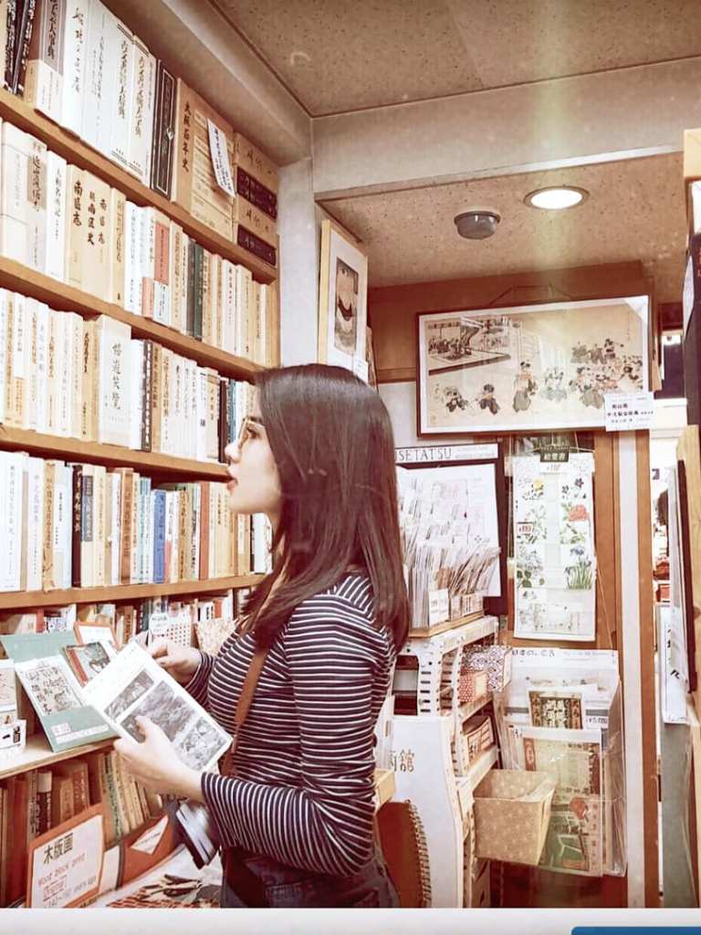Hôm qua, Vy tình cờ lục ra được được tấm ảnh chụp ở hiệu sách của bác Yoshinori ở thành phố Osaka năm 2019.